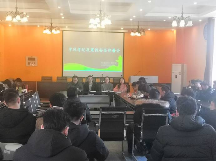 于12月31日在机电院馆218召开了考风考纪及安全部署会。学院王荣优、曲季、吕勇、纪全菊四位老师出席会议,大一至大三各班班长参加了本次会议。