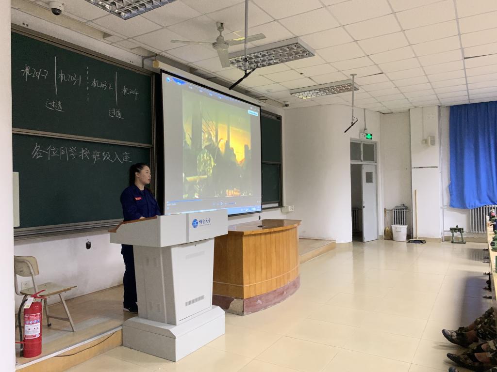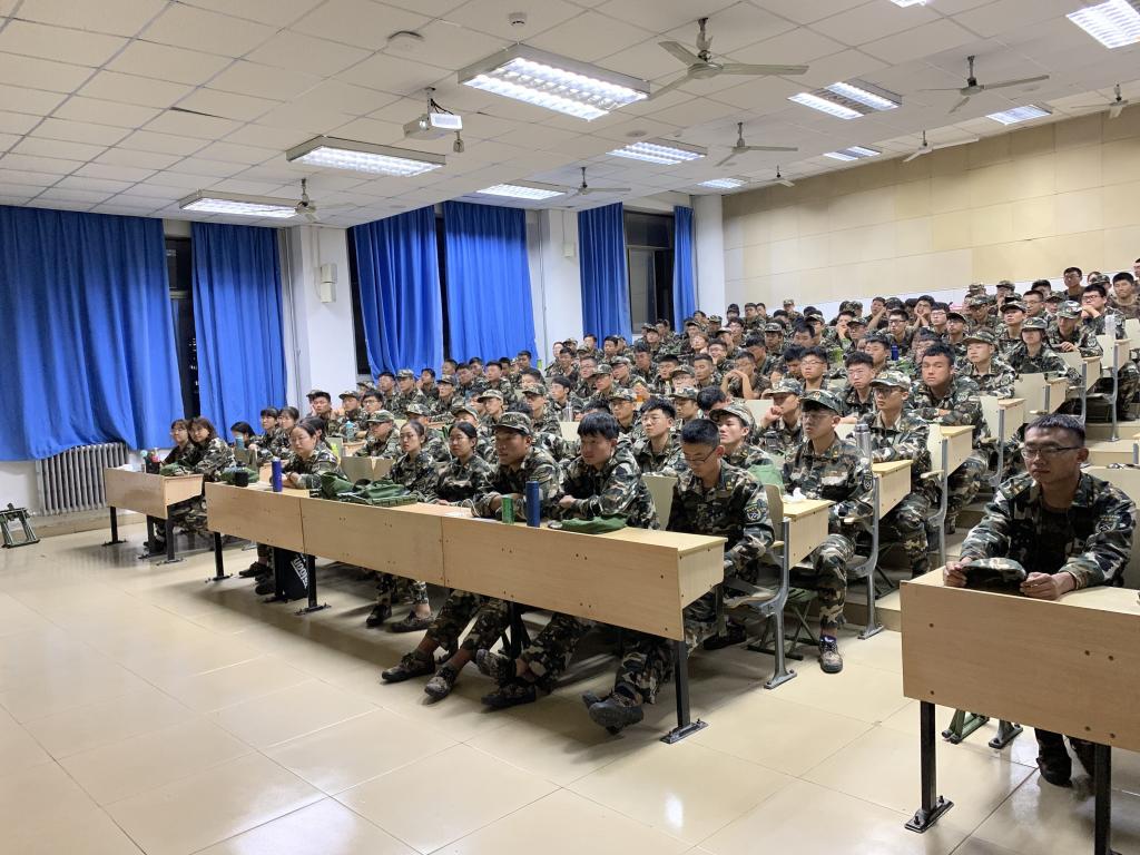 各班导师助理组织安排新生有序进入教室,并就今天军训期间出现的问题进行了总结,总结之后开始播放校园安全教育片。随后,由消防教员来向同学们讲授消防安全方面的知识。在此过程中教员向同学们普及了消防安全不文明行为举报电话96119,还以幽默的方式讲解到灭火器使用步骤“提、拔、握、压”可以根据“提拔我呀”谐音来记忆。并特别强调同学们在平时要留意安全通道,掌握一定的自救技能并且在遇到火灾或者险情的时候切忌慌乱,一定要沉着冷静的运用逃生技能和自救方法。要学会运用身边的消防器械,只要胆大心细,救命绳就在身边。紧接着,校园消防教育结束后开始播放国家安全教育片,随着我国的国际地位不断提高,为了维护国家安全,我国深入开展反间谍斗争。影片中列举了很多境外不法分子通过金钱诱骗国内人士作为“间谍”来获取我国机密的案例,危害国家安全的间谍行为都要受到相应的法律追究。最后,教育片播放完毕后导师助理组织学生有序离开。