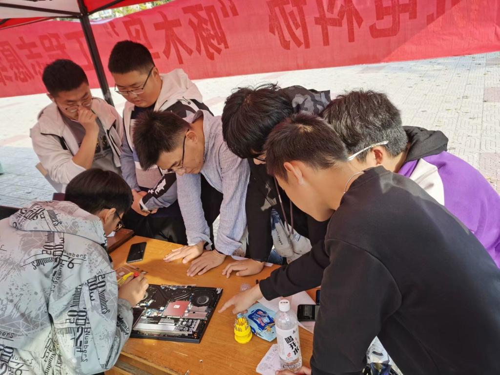 于青春广场与烟大家属院同时开展“啄木鸟”志愿维修活动。近百名机电学子参与本次志愿维修服务,成功维修师生电脑近40台。