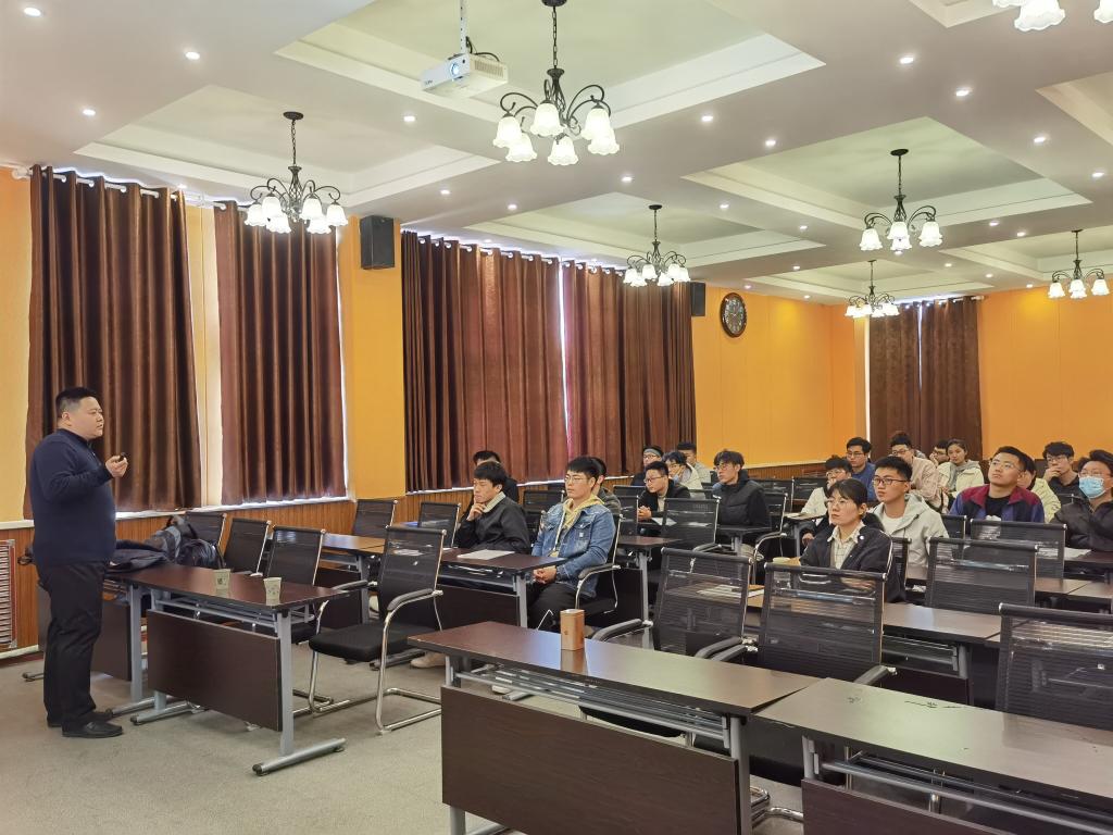 开展招聘会,秋招时该公司就成功吸纳了数十名应届毕业生。此次招聘宣讲会旨在扩招应届毕业生,吸收更多人才。本次招聘会分为三个阶段:宣讲、分组面试和洽谈。通过PPT宣讲,何震向同学们介绍了中国重汽的企业历史、职业岗位组成、事业平台、人才管理体系、后勤服务以及入职培训等多方面信息,让同学们深入了解该公司的背景前途,以便求职学生根据自身具体情况选择参加面试。随后,何震向同学们分享了他在面试时遇到的趣事:简历忘写名字,各种毫不相关的工作经历等,有效缓解了招聘会的严肃气氛,带动了同学们的情绪。同时何震也特别强调了面试者的态度,他期望面试者要有朝气和积极向上的精神面貌。接着招聘会开始了面对面面试环节,有意愿的毕业生逐一介绍自己,参加面试。至此,此次招聘会圆满结束。