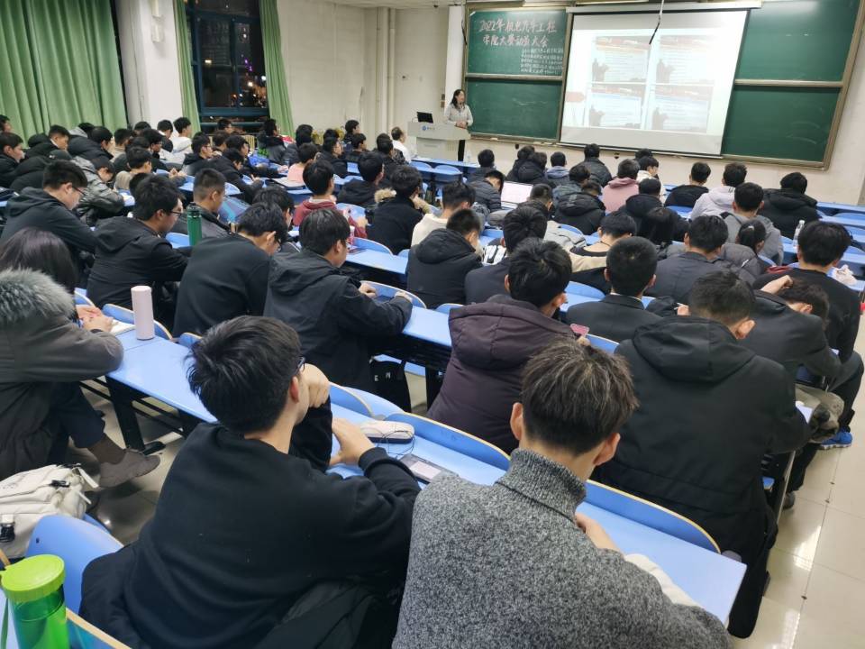 会议开始之前,工作人员播放了一段近年参赛作品的展示视频,充分调动了现场的气氛。会议伊始,指导老师应华针对全国三维数字化创新设计大赛,为同学们展开详细讲解,她鼓励同学们在认真学习专业知识的同时,积极参加科技类比赛,锻炼自身思维。随后,指导老师王林平从大赛简介、大赛流程、参赛方式以及比赛理念四个方面为同学们讲解了“西门子杯”中国智能制造挑战赛的相关内容,为准备参赛的同学指明方向,王林平老师幽默风趣的语言不时引得全场得阵阵掌声。接着,历年优秀参赛队员代表张楚霄、袁颂歌、刘嗣睿依次上台为大家分享比赛经验和参赛过程中的趣事,同时还热情地与同学们展开互动,认真地解答同学们提出的问题,将现场的气氛推向了高潮。至此,本次大赛动员大会圆满结束。