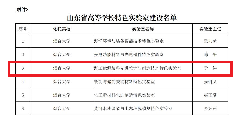 申报的“海工能源装备先进设计与制造技术特色实验”进入山东省高等学校特色实验室建设名单。