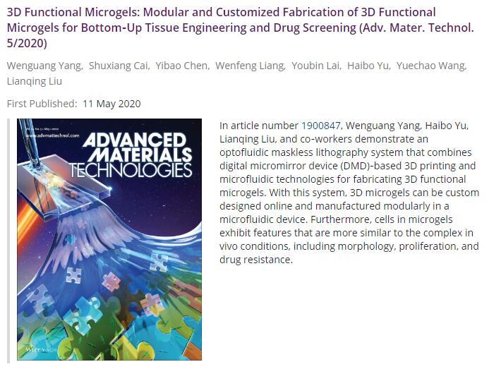 面向生物医疗的跨尺度智能制造团队利用机器人化的微纳操控和组装技术在组织工程领域的最新研究成果——Modular and Customized Fabrication of 3D Functional Microgels for Bottom-Up Tissue Engineering and Drug Screening,午夜AV